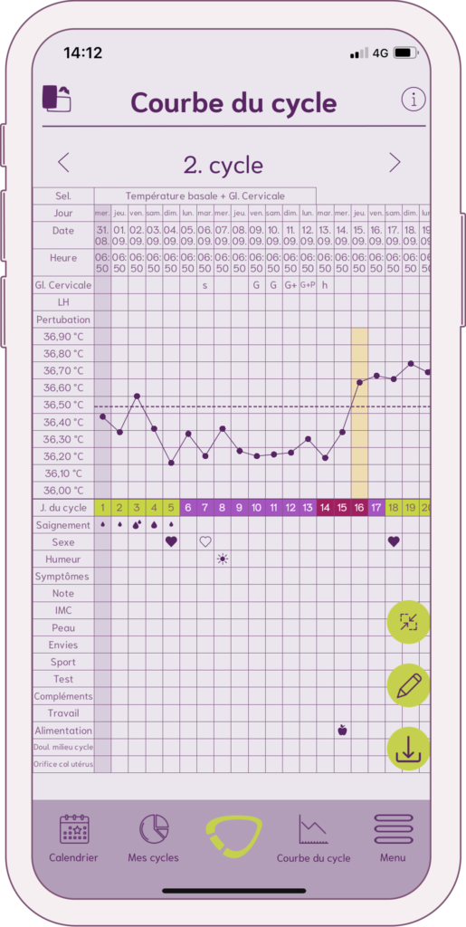 Notez vos observations dans un tableau de suivi ou dans une application de suivi de cycle comme cyclotest.