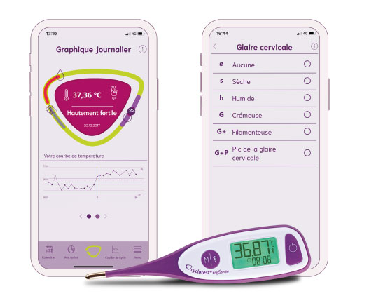 Il existe des thermomètres à double décimale comme le cyclotest mysense ou trackle qui permettent via leur aplication de réaliser la courbe de température et vous aide à déterminer votre période d’ovulation.